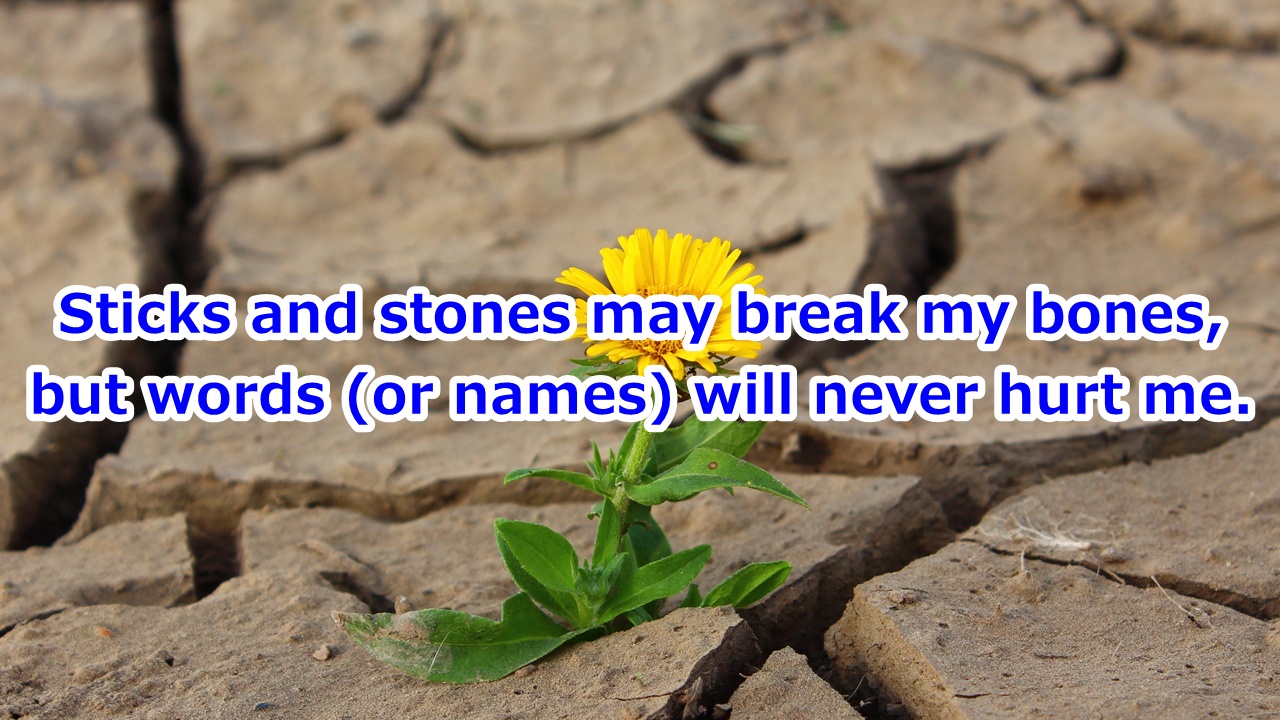 ■言葉の礫(つぶて)を受け流す。 自分を励ますために唱える言い回しです。 ■今日の英語フレーズ Sticks and stones may break my bones, but words (or names) wil […]
