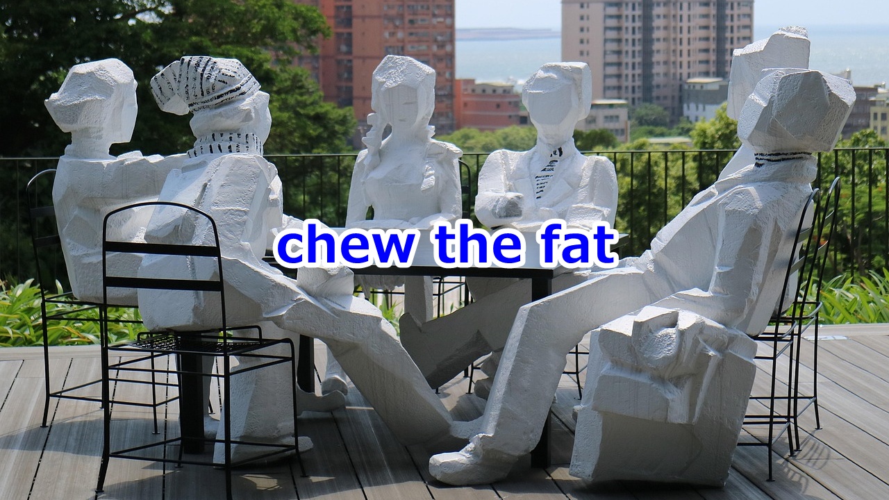 chew the fatは、直訳すると「脂を噛む」となり意味がわかりにくいですよね。それがなぜか「おしゃべりに時間を費やす」という比喩的な意味合いを持っているのです。