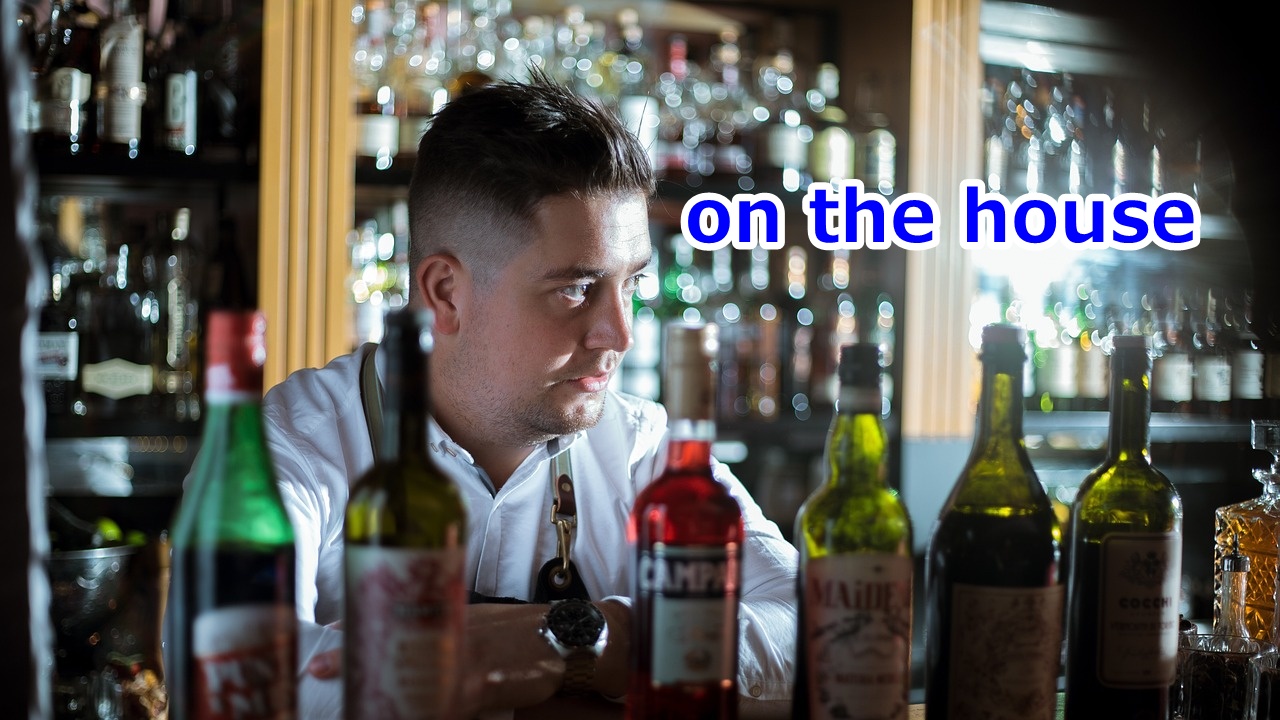 例文(1)のIt’s on the house.は、映画やドラマのバーやレストランのシーンでよく耳にしますので、チェックしてみてください。また、「特別な理由で無料」というニュアンスがあり、単にfree (ただ) と言うよりも、丁寧な、あるいは粋な響きを持っています。もし旅行先のレストランでIt’s on the house.と言われたら、「店が厚意で出してくれた」と理解すればよいでしょう。ちなみに、「私のおごりだよ」はIt’s on me.と言います。
