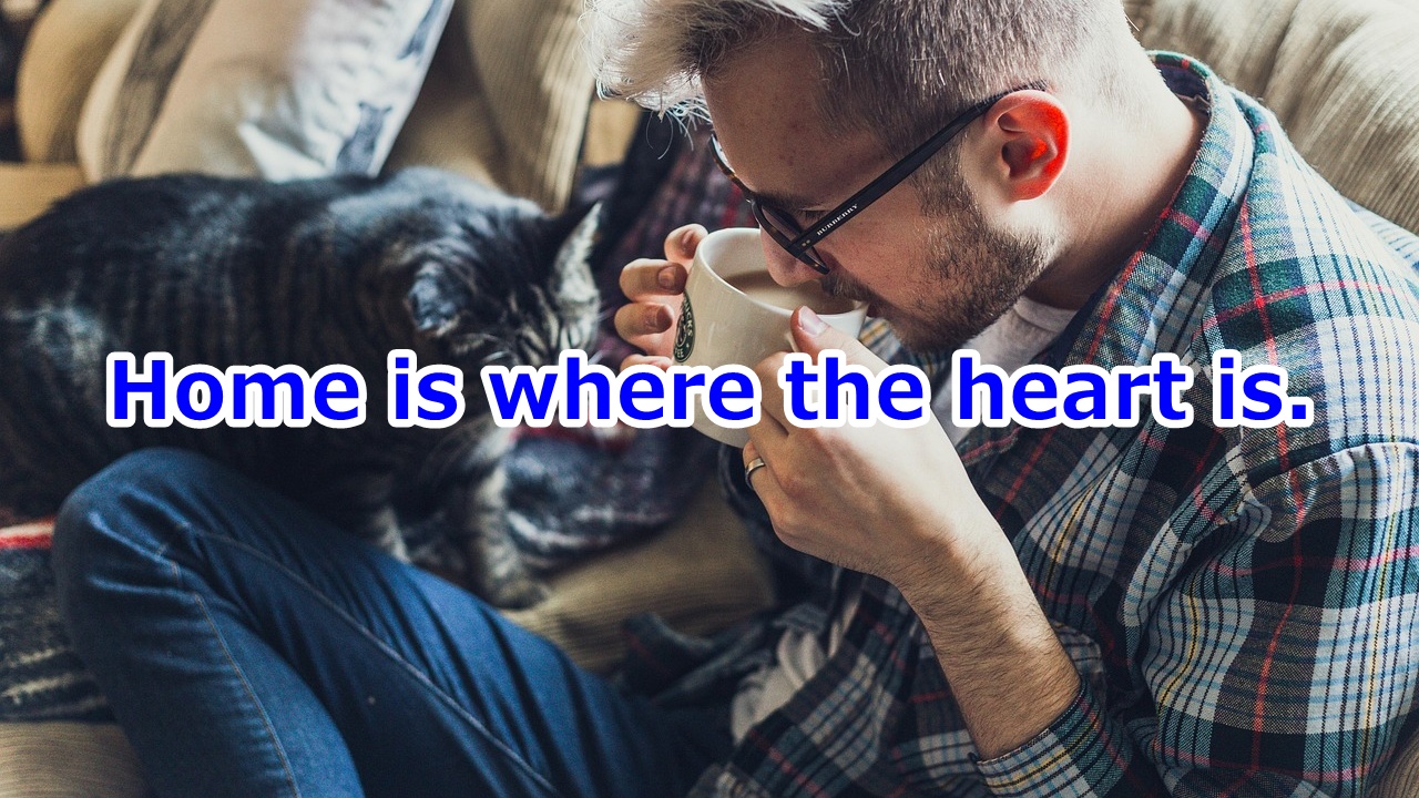 Home is where the heart is.は英語のことわざで、直訳すると「家は心があるところにある」となります。実際のニュアンスは、「心がある場所こそが本当の家である」「故郷とは心の拠り所である」となります。