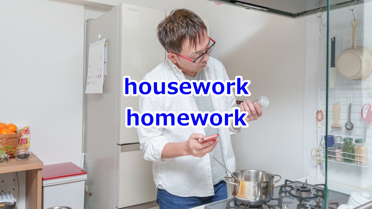 どちらも-workを含みますが、指す対象が全く異なる点に注意が必要です。houseworkは家庭内で行う労働、homeworkは家で行う学業的課題です。