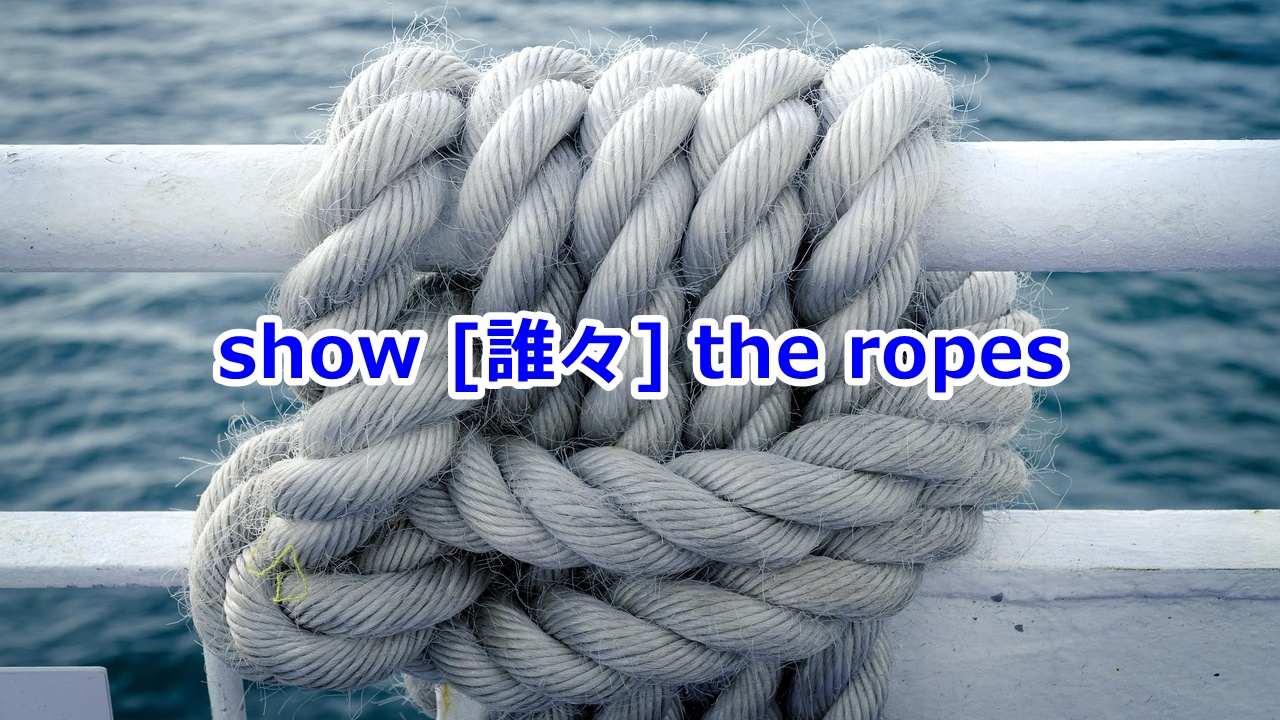直訳は「…にロープを見せる」ですが、ここでは「ロープの扱いを示す・教える」です。元々は、船乗りが新入りにロープの扱い方を教えるという航海用語に由来するそうです。ロープの扱いは船の運行に欠かせない重要なスキルでした。そのため、「ロープ=肝心な操作方法、基本ノウハウ」という意味が生まれ、「重要な基礎事項を教える」という比喩的な意味に発展して使われるようになりました。