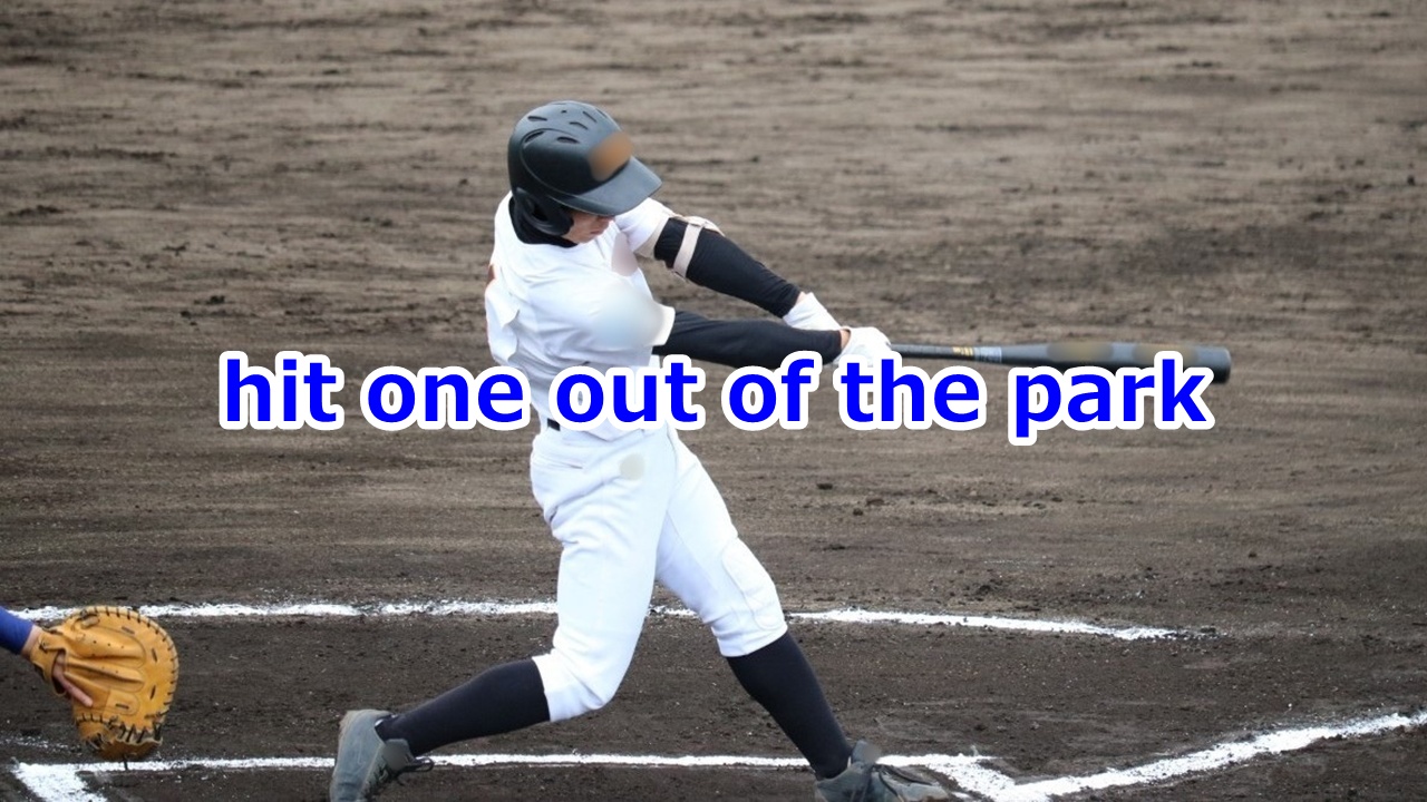 hit one out of the parkは、もともと野球用語で、文字どおりには「ボールを球場(park)の外へ打ち出す」、つまり観客席を越えるホームランを打つことを指します。