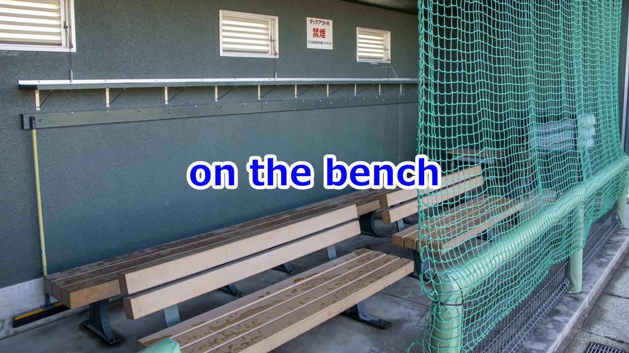 on the benchは、 「待機中で」「控えに回っていて」「重要な役割を与えられていない状態で」「一時的に戦列を離れていて」という意味の比喩表現です。