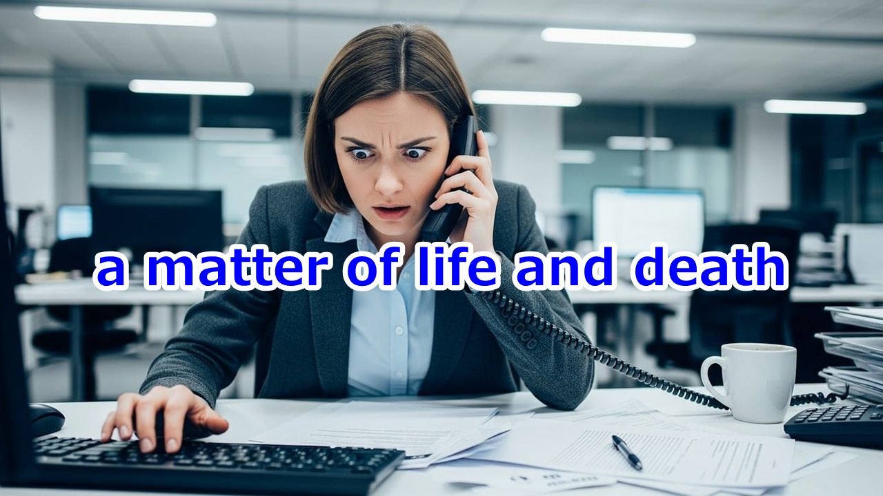 直訳すると「生と死の問題」で、哲学や倫理の議論を想像しそうですが、実際の意味は「生きるか死ぬかの状況」です。事の重大さが極限に達していることを表していて、今すぐ行動を起こさなければ、という強いプレッシャーを感じさせる表現なのです。