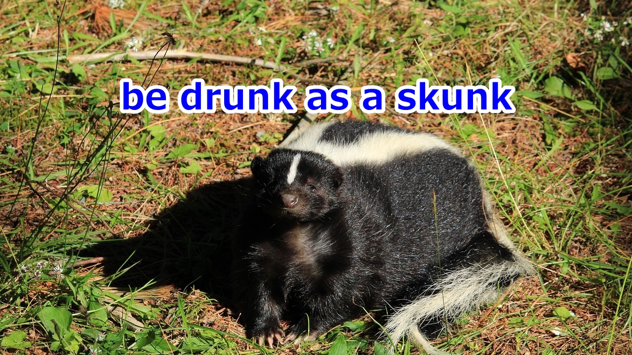 直訳すると「スカンクのように酔っ払っている」となります。be drunkだけで「酔っている」の意味で完結するのですが、わざわざas a skunk (スカンクのように) と表すことがあるのです。実際には、動物学的にスカンクがアルコールを好むとか、あるいは酔いやすいといった事実はないのですが…。