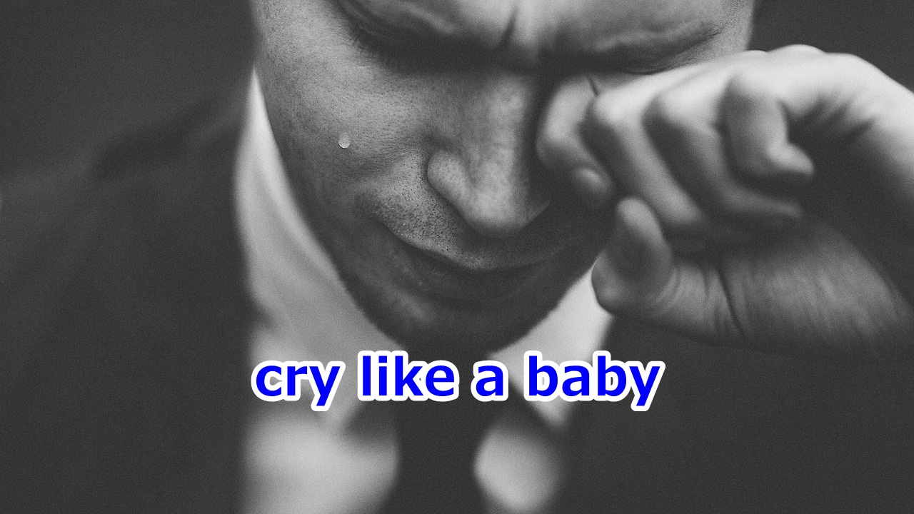 cry like a babyは、「声を上げて激しく泣く、号泣する」「なりふり構わず泣きじゃくる」という意味の定形フレーズです。「赤ん坊のように泣く」が直訳ですが、大人が自制心を失うほど激しく泣く様子をこのように表します。赤ん坊が感情を制御する術を持たず、純粋に欲求や苦痛を表現することから生まれました。とてもわかりやすいフレーズですね。