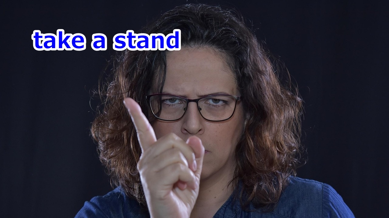 take a standは「(反対や困難を押し切って)明確な態度をとる」「自身の信念を守るために立ち上がる、断固とした立場を表明する」という意味の定形フレーズです。ここでのstand (立ち位置、立場) は、軍事用語で「敵の進撃を食い止めるための陣地」や「防御地点」を指していた歴史があり、そこから転じて「譲れない一線を守るための確固たる意思」の意味で使われるようになりました。take a stand against [何々] (…に反対する立場をとる) や、take a stand for [何々] (…を支持・擁護するために立ち上がる) という使い方もよく見られます。