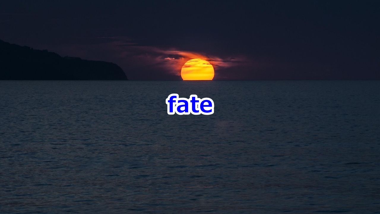 fateは「運命、宿命」「避けることのできない結末」「最期、非業の死、滅亡」という意味の名詞です。主に「自分ではコントロールできない、あらかじめ決められた運命」を指して使います。twist of fate (運命のいたずら) やseal one’s fate (運命を決定づける/とどめを刺す) といった決まり文句もよく用いられています。