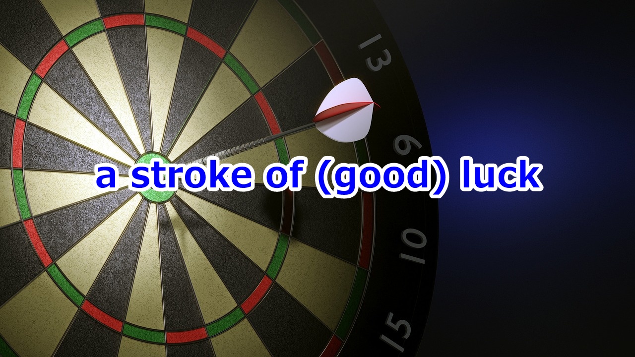 strokeは「時計が時を打つこと」「テニスなどの一打」「雷などの一撃」という意味ですので、a stroke of luckは、幸運がじわじわとやってくるのではなく、突然・一瞬でもたらされたという響きになります。日本語の「棚からぼた餅」もそうですが、英語の「幸運の一撃」もおもしろい表現ですね。
