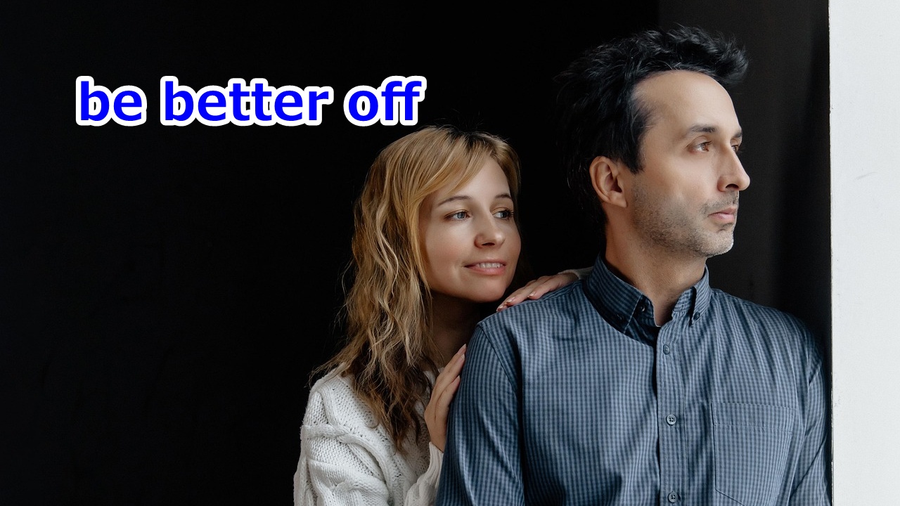 直訳すると「より良い状態(better)で、離れている(off)」となりますが、なぜoffなのでしょうね。offは「ある特定の出発点から離れて、別の場所・状態にある」という意味を持っています。つまり、be better offは「元のあまり良くない所から離れて、もっと良い場所・状態に身を置いている」というイメージなのです。