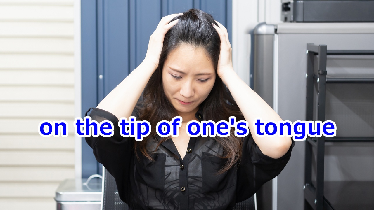 直訳すると「…の舌の先に」となりますが、実際に何かが舌の上に乗っているわけではなく、脳内では検索できているのに、言葉として出すためのスイッチがうまく入らないという現象を指す比喩表現です。