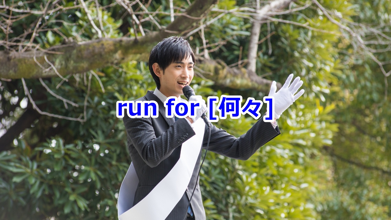 run for [何々] …に立候補する 公開日:2026年1月13日 一般表現読書・時事・教養・フォーマル ■ただ「走る」だけではない 体ではなく、気持ちが走っているイメージです。 ■今日の英語フレーズ run for [何々] …に立候補する (賞・地位・称号などを)狙う、得ようとする 📝例文 (1) She […] 続きを読む