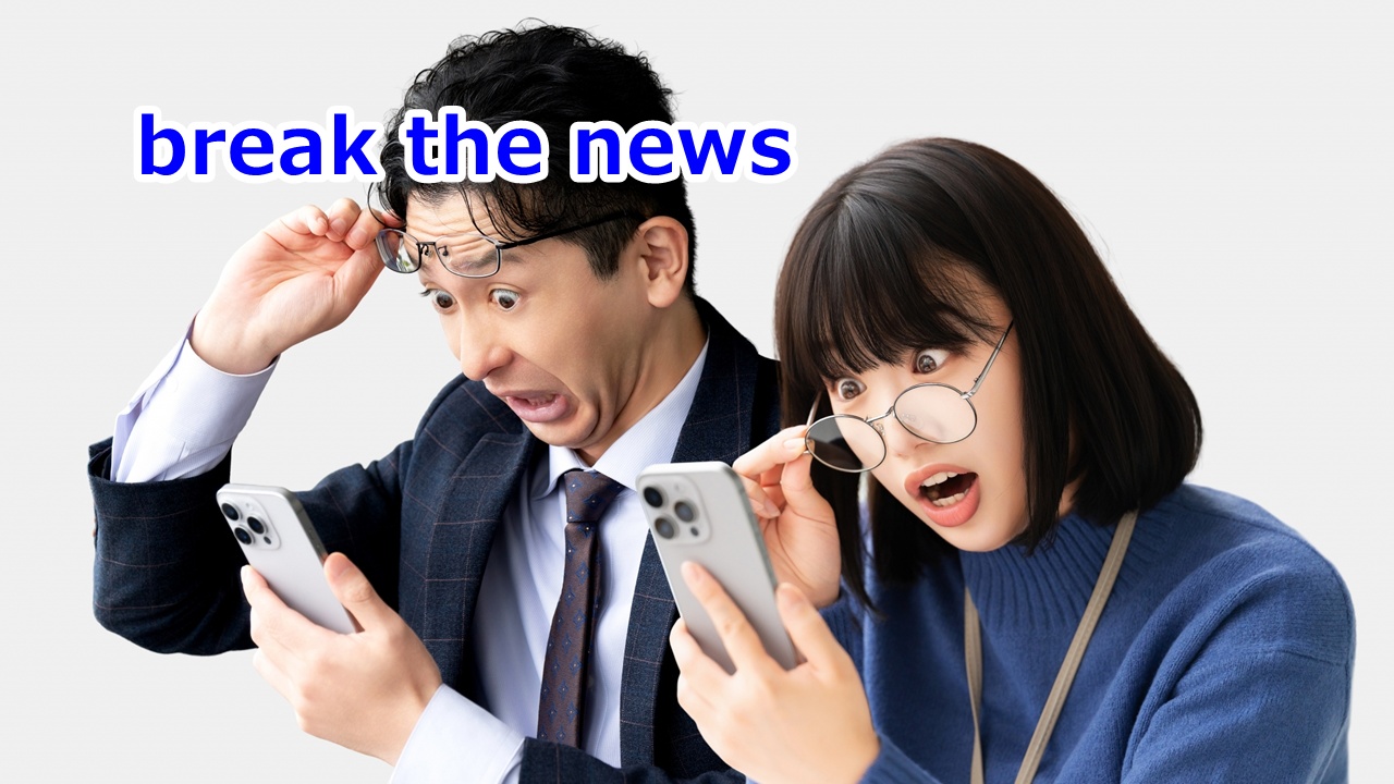 break the news 知らせを切り出す、伝える 公開日:2026年3月18日 一般表現 ■沈黙を破り、伝える 衝撃的なことや、予想もしていない重要なことを伝える時は、言葉を選び、慎重に切り出しますね。 ■今日の英語フレーズ break the news (残念な・不幸な・衝撃的な・重要な)知らせを切り出す、 […] 続きを読む