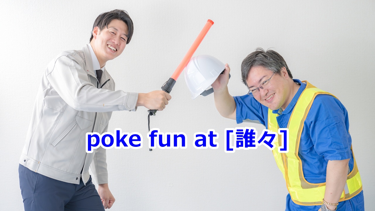 poke fun at [誰々] …をからかう 公開日:2026年3月27日 定形表現または比喩 ■軽い冗談 攻撃するのとは少し違い、相手を指でツンツンと突くようなニュアンスです。 ■今日の英語フレーズ poke fun at [誰々] …をからかう、茶化す、冷やかす 📝例文 (1) The come […] 続きを読む